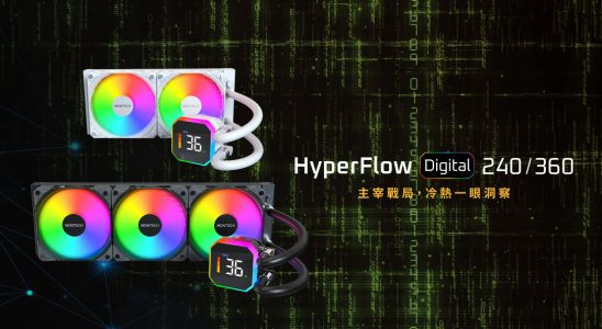 君主科技推出 HyperFlow Digital 系列一體式水冷散熱器:整合數位顯示設計即時顯示 CPU 與 GPU 的溫度讀數