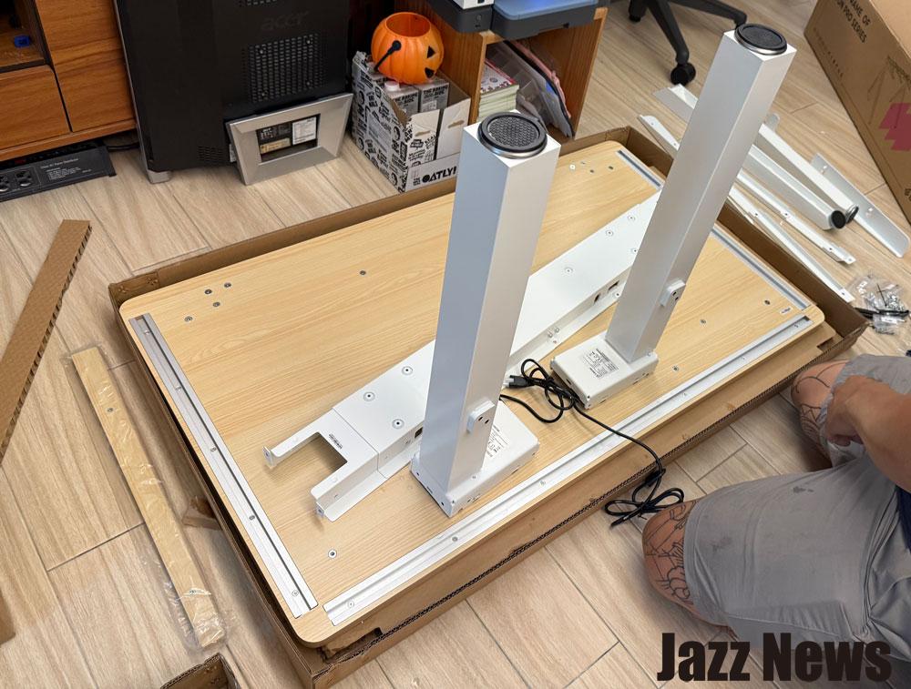 安裝方式主要就是先讓桌面朝下放在地上,將升降腳與主要結構安裝上去。