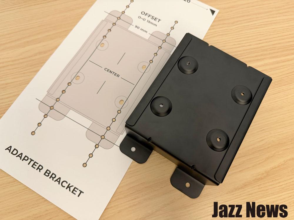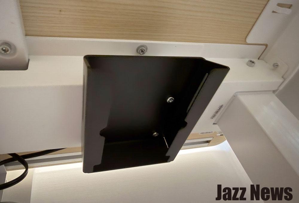 另外還有附一個可以自行以尖牙螺絲任意安裝到桌面下的固定座,可以搭配隨附的螺絲孔位安裝紙來準確上螺絲(可先鑽小孔再攻螺絲上去比較好用)