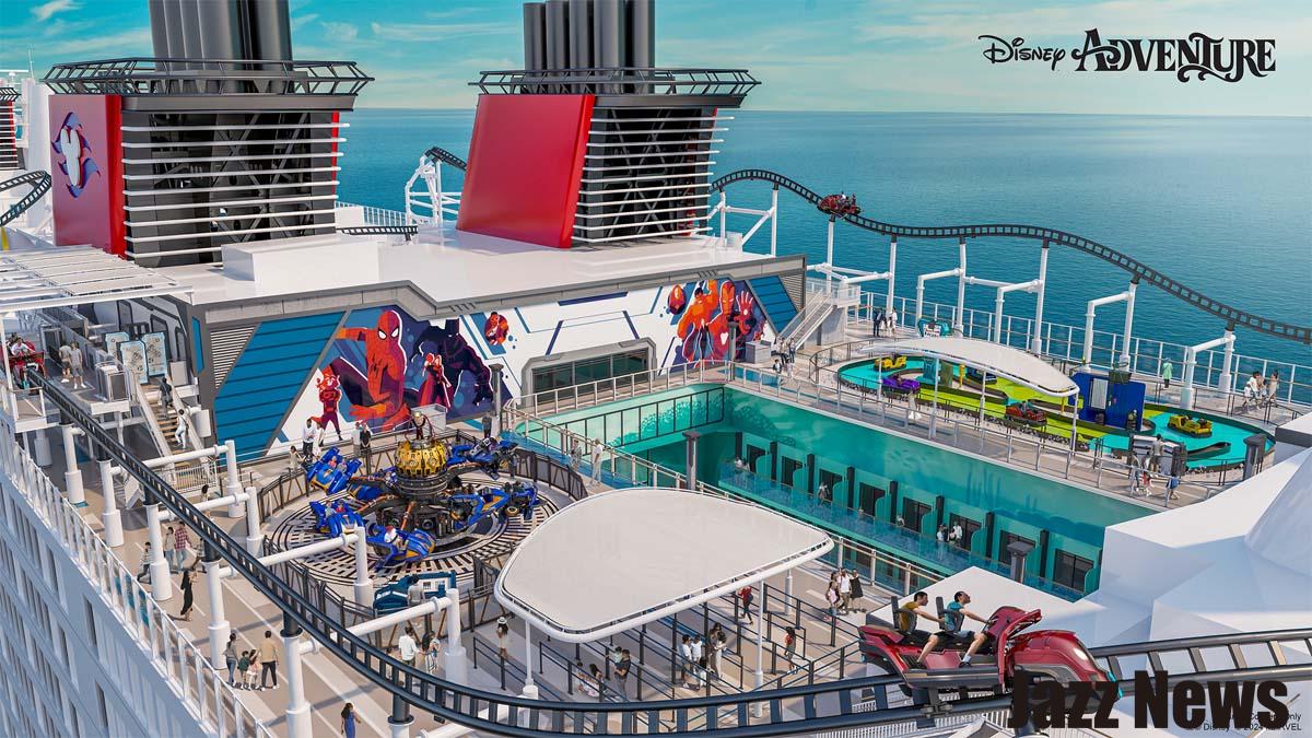 號稱移動式豪華度假村的「迪士尼探險號」設有七大主題區,包含登船後迎接旅客的Disney Imagination Garden,宛如走進童話世界的奇幻氛圍;以漫威主題打造的Marvel Landing,擁有250公尺全球最長的海上雲霄飛車;採用《玩具總動員》繽紛色彩設計的Toy Story Place,可享受超長划水道;以《小美人魚》和《海底總動員》為靈感打造的餐飲區Disney Discovery Reef;設有露天座位與弧形游泳池的 Wayfinder Bay;提供電子遊戲和電影院等多元娛樂的San Fransokyo Street;以迪士尼公主彩繪裝飾天花板的餐廳與商店Town Square等,每個角落都隱藏著經典的迪士尼動畫人物,為旅客帶來前所未有的奇幻體驗!