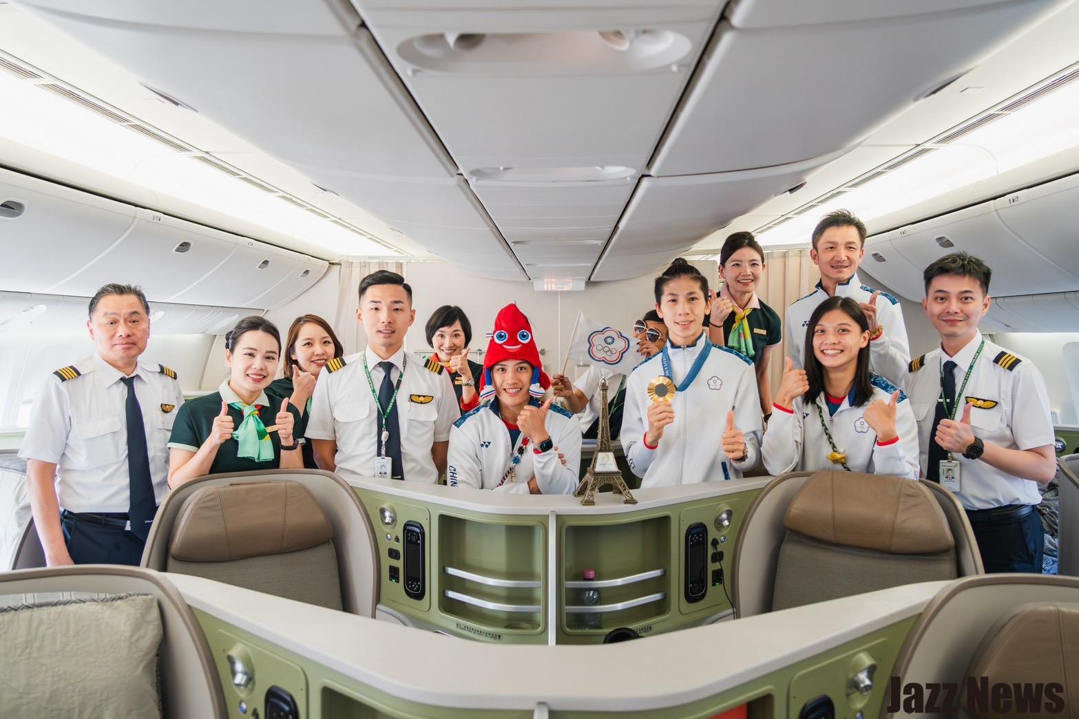 「在今天的航班上,有代表台灣前往巴黎參賽的中華隊選手,包含田徑、拳擊、桌球項目,我們很榮幸可以陪伴他們一起回家,感謝所有選手們的傑出表現,您們是台灣的驕傲。