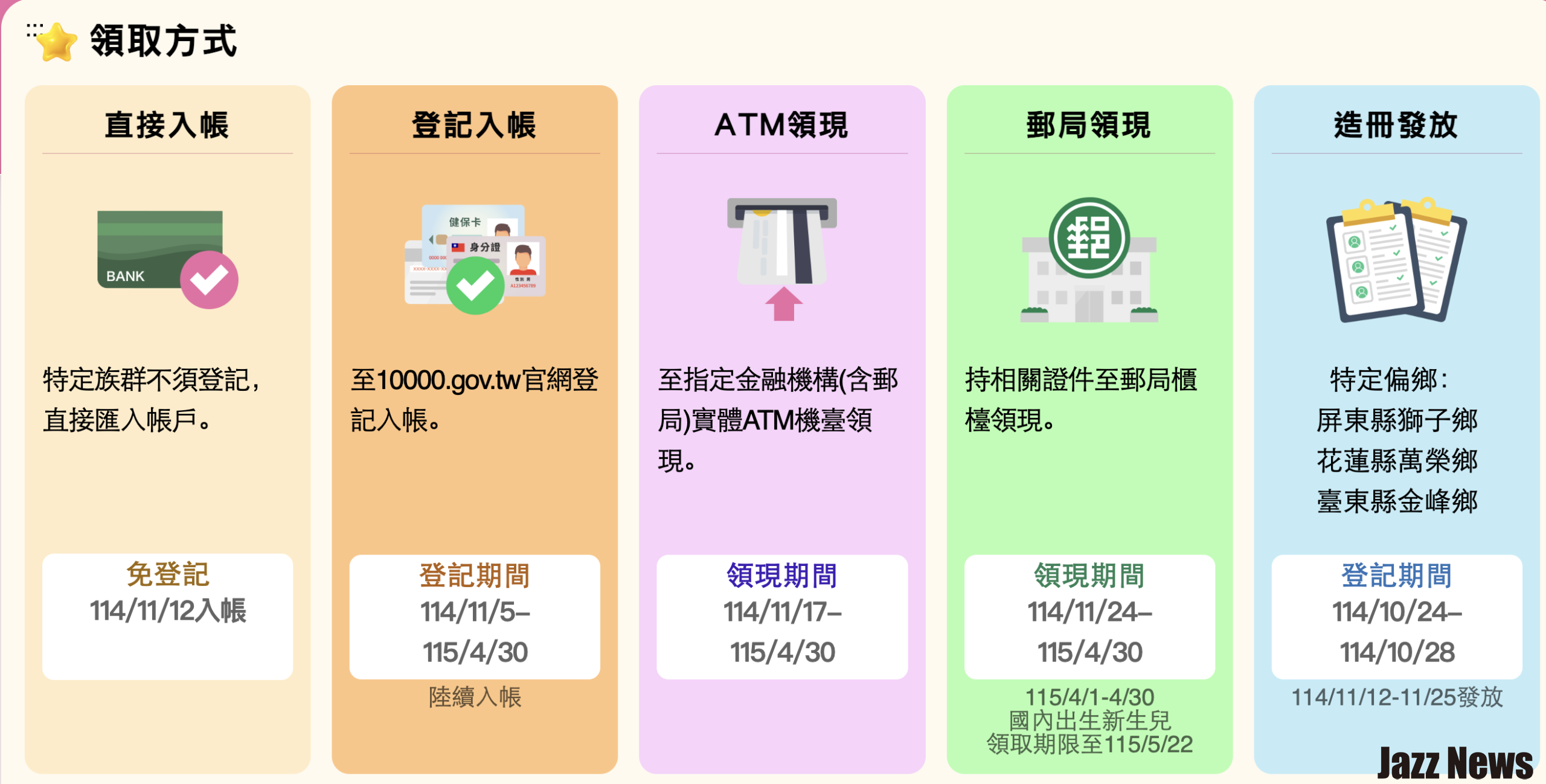 - 郵局領現11/24開放領取,115年4月30日截止。