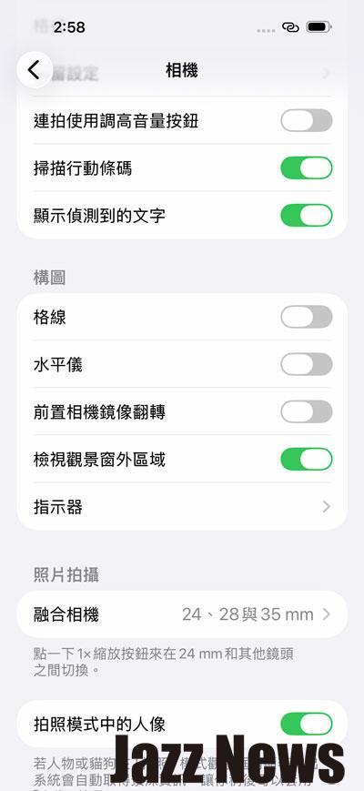 此外,一些相機拍攝輔助的功能也能隨時調整要開啟或是關閉