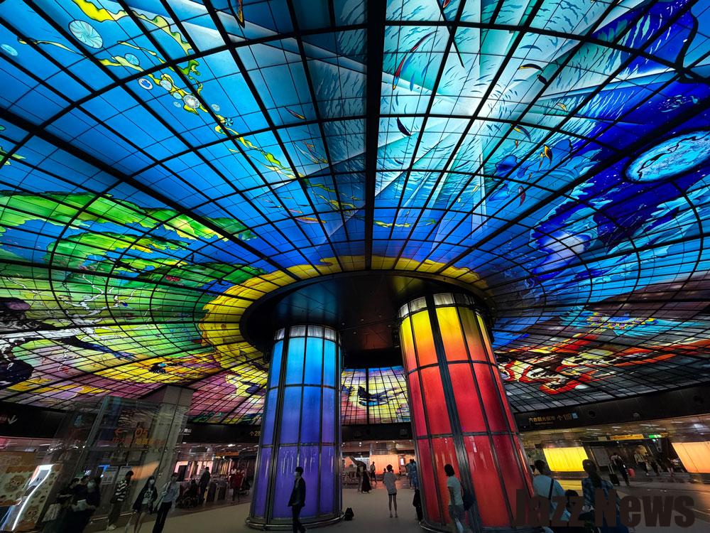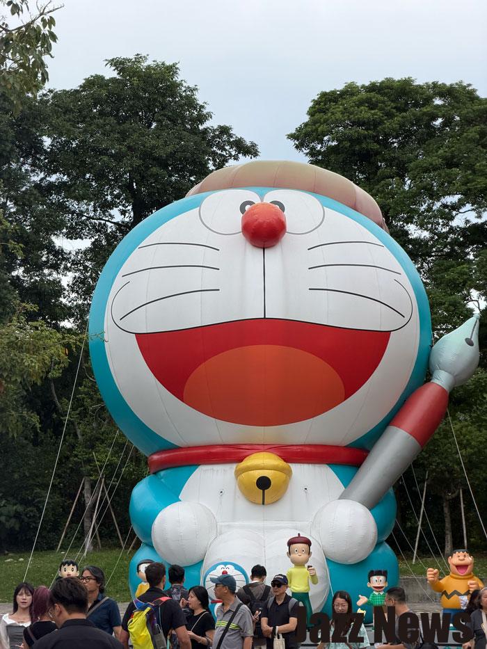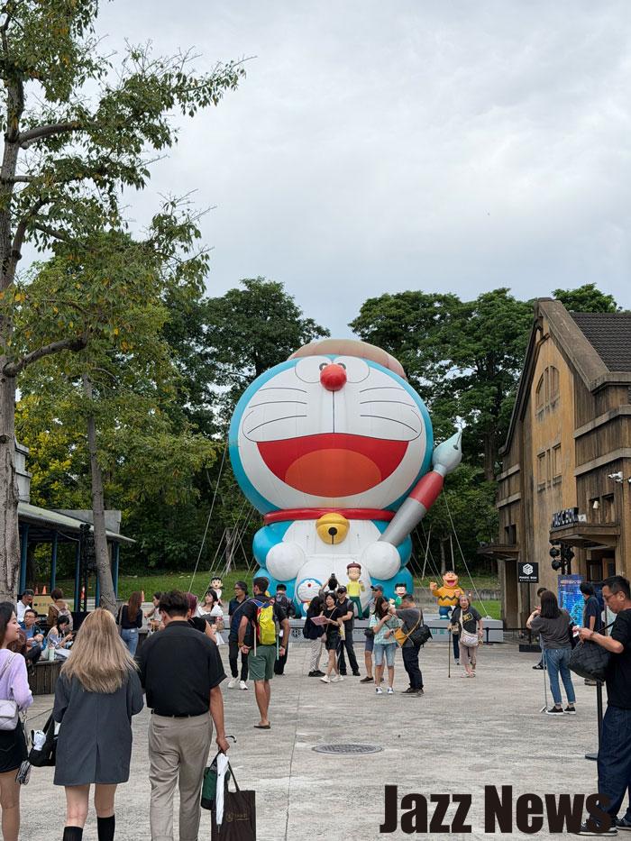 拍攝像是上圖這樣的場景時(巨型多啦A夢),如果你越往要拍攝的物體移動,拍攝該物體上方角度就會不同,因此無法拍出全部容貌。