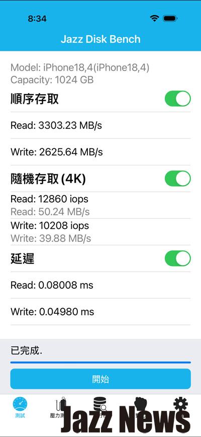 這邊測試的手機儲存碟的資料讀寫速度,讀取部分來到 3303.23 MB/s,寫入則是來到 2625.64 MB/s,這速度甚至還比多數筆電或電腦的 M.2 PCIe SSD 還快啊!
