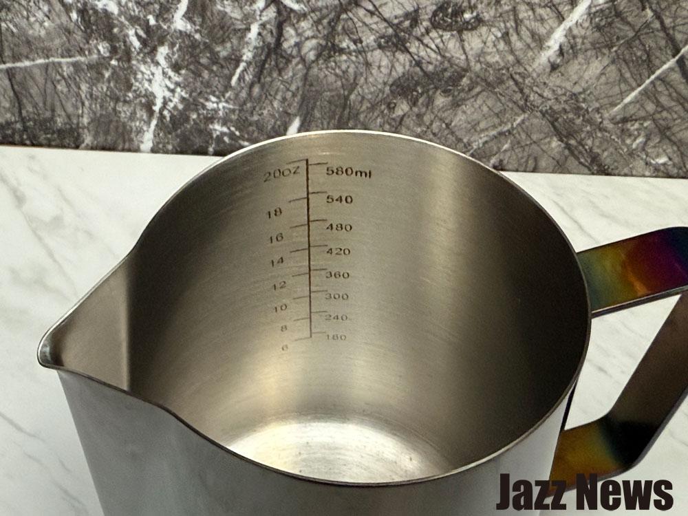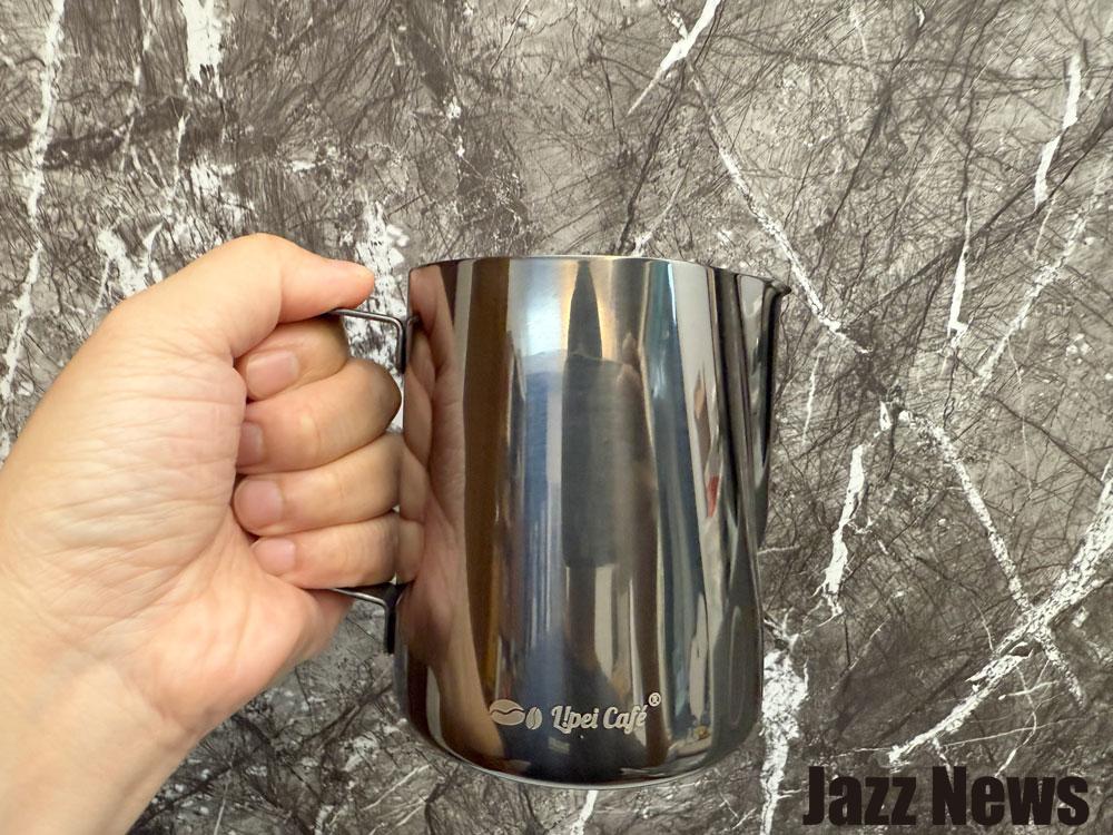 Lipei Café 推出的拉花鋼杯有多種容量與顏色選擇,我入手的是 600ml 不鏽鋼鷹嘴款,產品採用 304 不鏽鋼材質,內有雷雕刻度,杯身杯口一體成形,圓弧曲線做工,並且有加厚設計更順手!