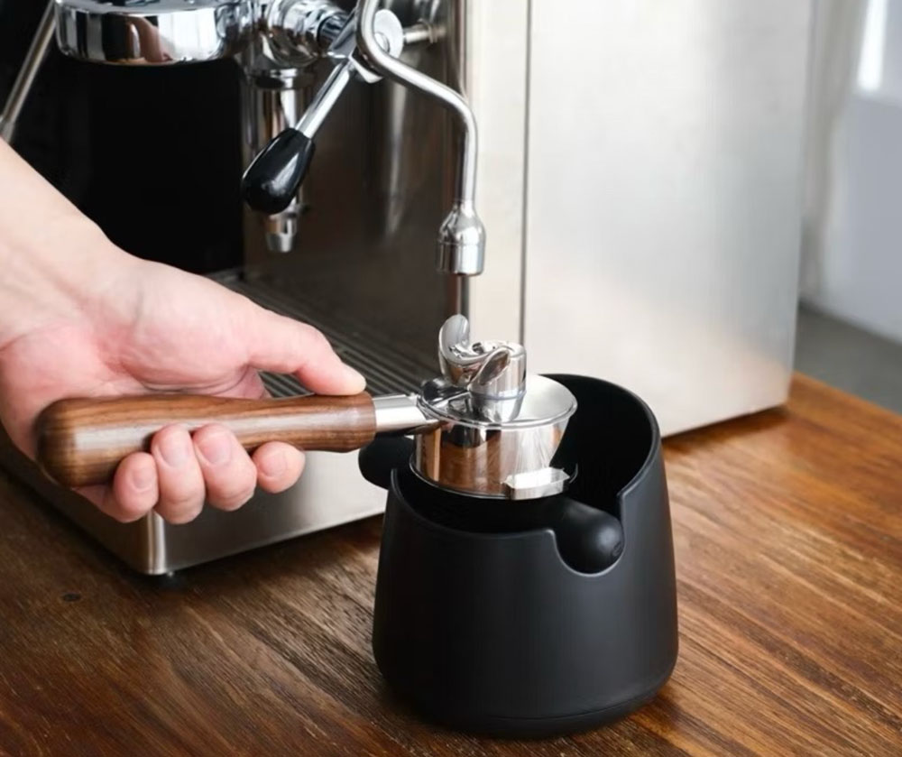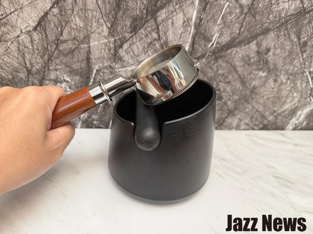 使用方式相當簡單,像上圖方式敲擊橡膠敲桿一兩次就能順利將咖啡渣給敲下來了!