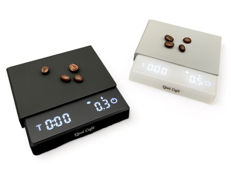 Lipei Café 推出的咖啡秤「義式 / 手沖 mini款」有黑白兩種顏色;均附贈矽膠隔熱墊
