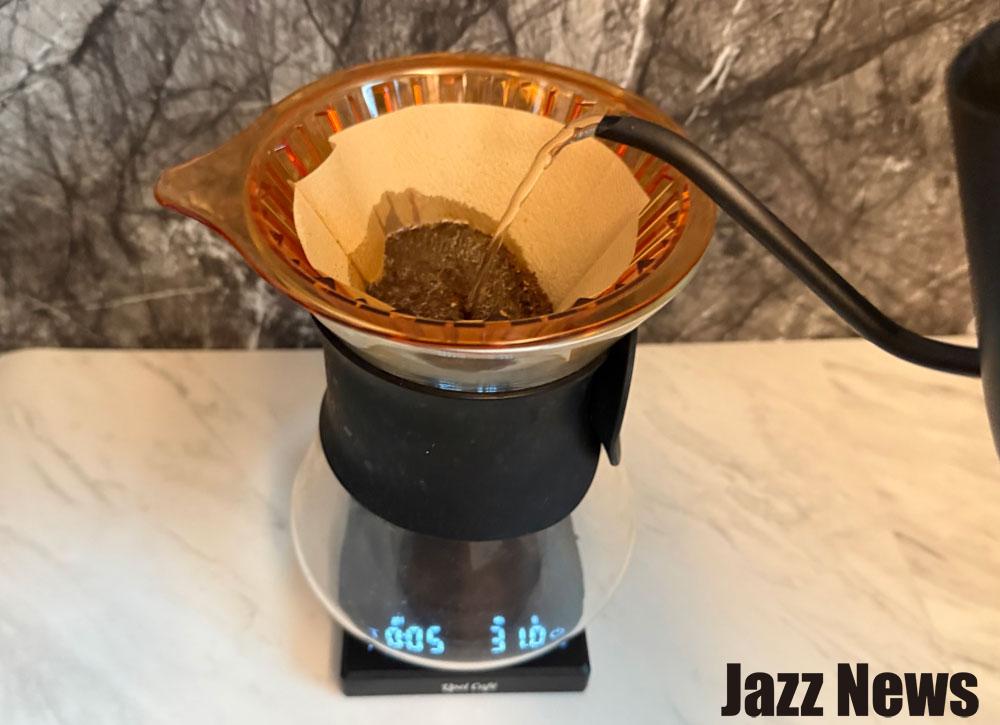 在加入咖啡粉之前要先歸零重量,然後加入咖啡粉後觸碰一下「T」鍵就會自動記錄粉重並且歸零,接著注水後會自動記錄時間與注水量!