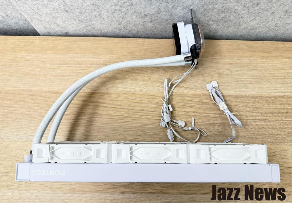 取出包裝盒內的 HyperFlow Digital 360 一體式水冷散熱器,可以看到已經預先將風扇與風扇相關排線安裝(串接)好了~