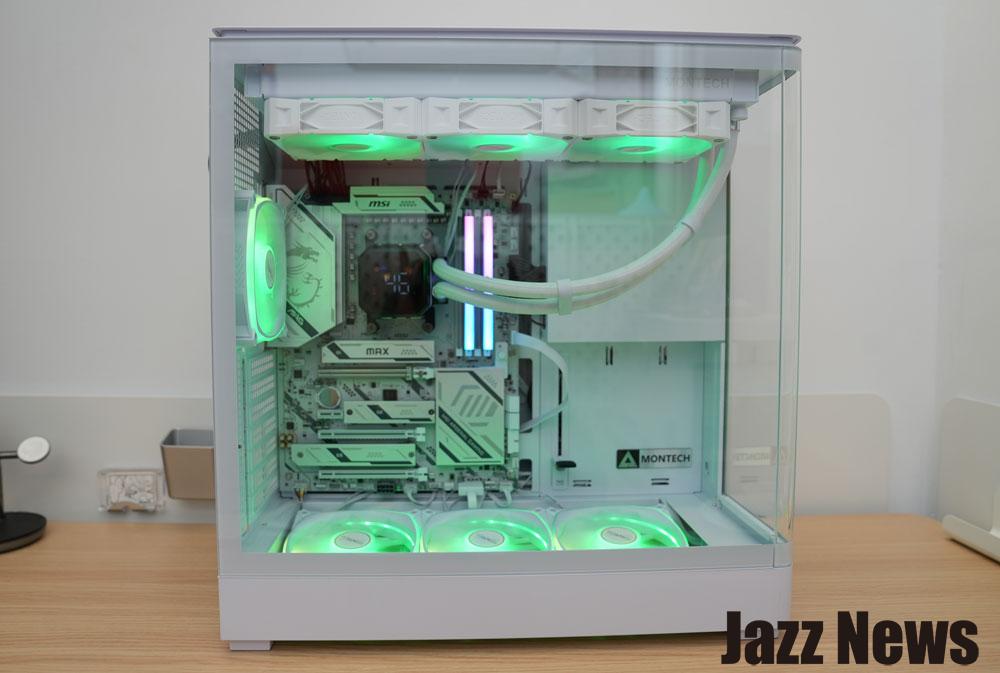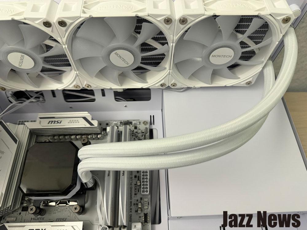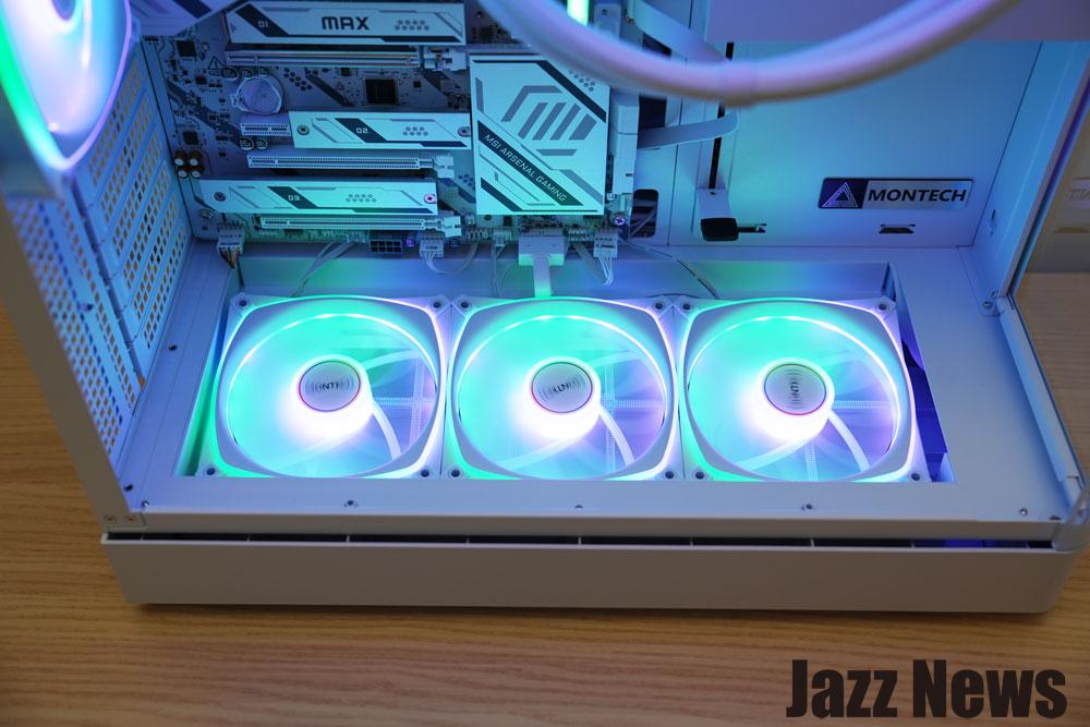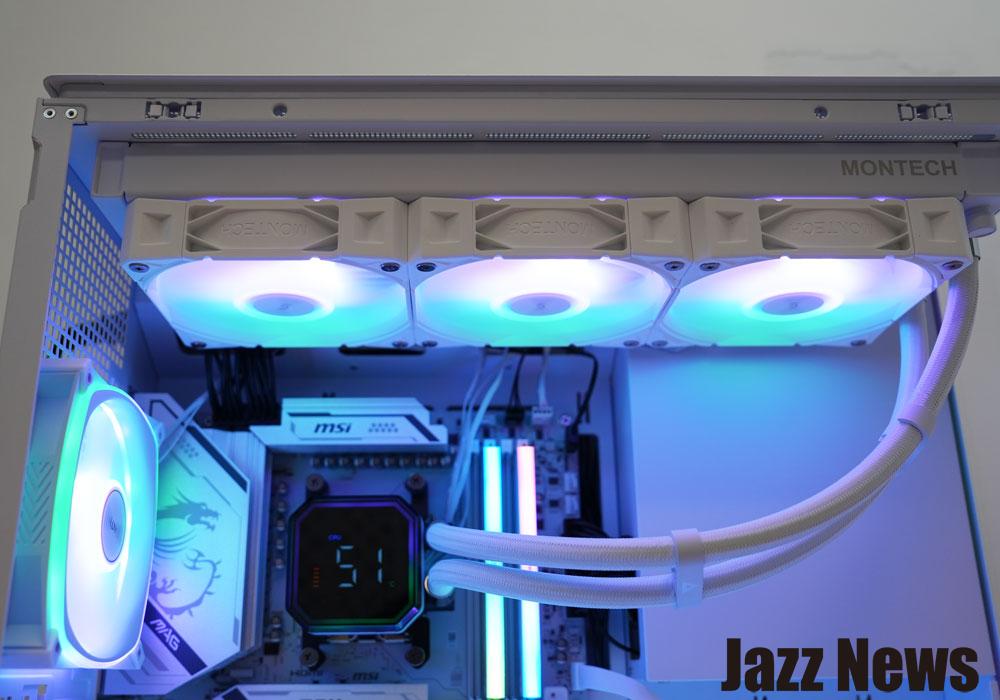 HyperFlow Digital 採用 3100 RPM 高效能水泵,水冷本體搭配高密度 27mm 散熱冷排與 MONTECH 全新打造的 E28 ARGB高效能風扇。