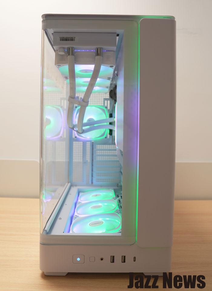 開機成功且風扇與機殼上的燈效都有作動(水冷頭的溫控資訊需要先安裝軟體,開機後就會自行下載,安裝後打開顯示 CPU 或 GPU 溫度功能即可)