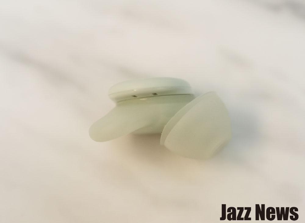 預先裝上去的耳塞直接適合用來睡眠時使用,這邊大家可以看到耳機的腔體算是較為扁寬的設計,而這樣的設計就能讓耳機佩戴在耳朵內時,即便壓到枕頭也不會有不適感~