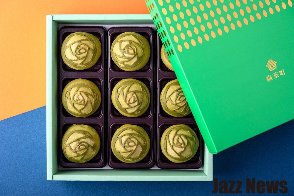 台灣包種茶的特色是帶有優雅的花香,有人更精描述是類似蘭花、桂花或茉莉花香,因此也被稱作「花香茶」。貓茶町「花香流心酥」以貓空包種茶為靈魂,餅皮翠綠色澤來自專利包種茶粉,內餡選用包種茶製成的茶豆沙,再包裹由貓空寒舍茶坊阿欽師的包種茶所製作而成流心餡,一口咬下茶香在口中綻放,回甘迷人。此外,為呼應花香茶的意象,酥面還特別擺放上由貓茶町高師傅獨家設計、添加包種茶的玫瑰圖騰巧克力片,烤製時茶巧克力片融化,將茶香與花香的意境完美融合,為傳統茶點注入一絲浪漫與典雅。貓茶町「花香流心酥」有3入及9入兩種規格,3入原價240元,2盒特價450元,5盒特價1,050元。9入原價720元,特價650元,2盒特價1,200元。