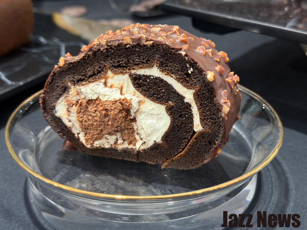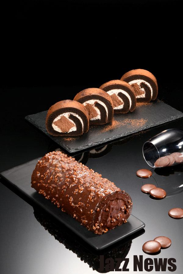 同場加映「厄瓜多爾黑巧克力生乳捲」特黑巧克力泡芙蛋糕鑲嵌珍貴無比的71%厄瓜多爾黑巧克力碎片,點綴上細緻的貝可拉可可粉一起烘烤,搭配清爽的北海道奶霜與厄瓜多爾黑巧克力慕斯,溫潤中帶有醇厚、濃重的可可底蘊,純粹中感受巧克力的悠長餘韻。